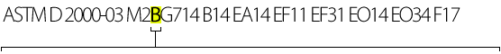 The rest of our specification consists of suffix requirements. Suffix requirements are specified when the basic requirements as set forth in ASTM D 2000 for a particular type and class of material are not sufficient to achieve the desired properties in the finished product. Suffix requirements always consist of one or two of both alpha and numeric characters. The meaning of the alpha characters is explained in the following table: