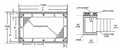 All Seals aluminum shielded air vent panels are fabricated from an aluminum honeycomb medium installed in an aluminum frame. The honeycomb provides high levels of shielding with a minimum resistance to air flow. APPLICATIONS: